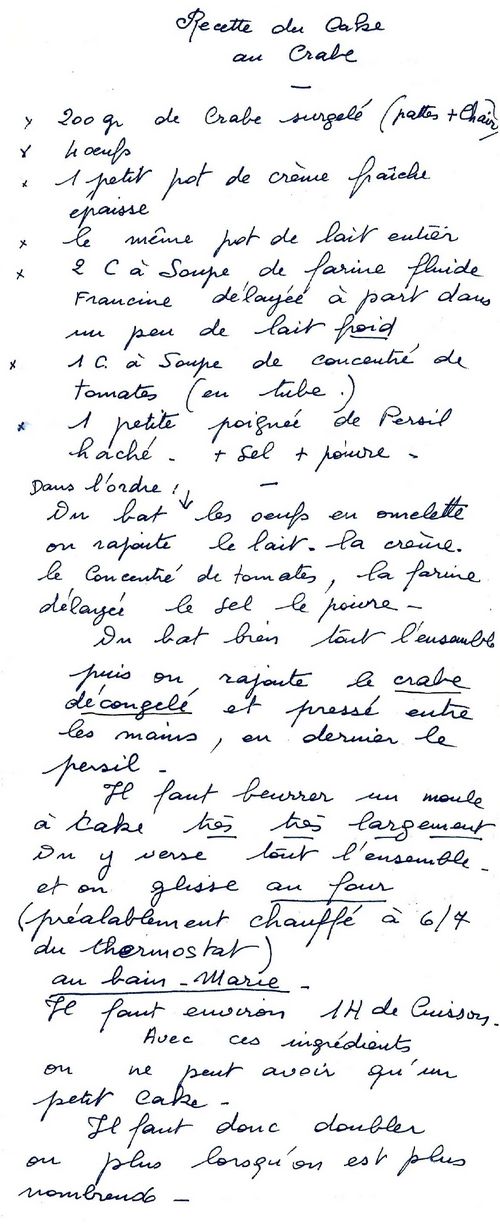 - 200 g de crabe surgelé (pattes + chair)